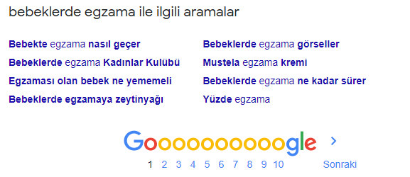 Burada önemli olan doğru ve direkt olarak konu ile ilgili kelime ve kelime gruplarını ilgili alt başlıkların altına yerleştirmektir. Örneğin yukarıdaki görselde “bebeklerde egzama nasıl geçer" kelimesini içeriğimizdeki “tedavi" konusunu içeren alt başlığın içerisinde kullanılması gibi.